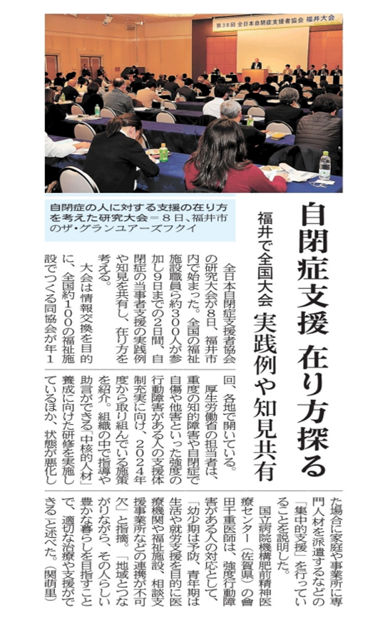 令和7年12月8日と9日の2日間にわたり、全日本自閉症支援者協会の全国大会が福井で開催されました。福井での開催は初めてとの事で全国から200名を超える方が参加されました。